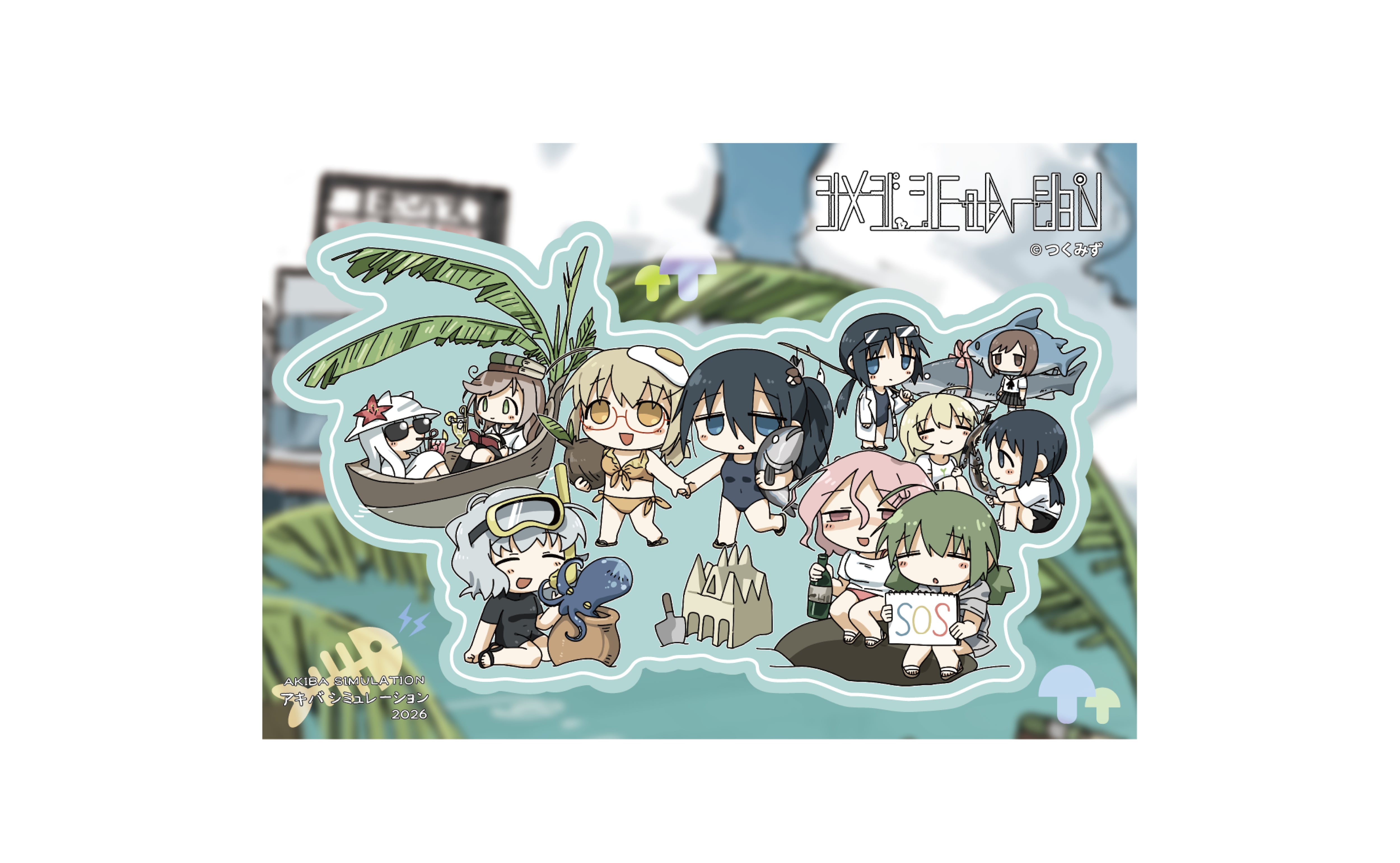 2025年12月13日〜2026年1月12日にボークス秋葉原ホビー天国2にて開催した シメジ シミュレーション 」イベント「アキバ シミュレーション 2026」描き下ろしイラストをデフォルメ化したGG3耐ステッカーです。作画はイザベラが担当しています。