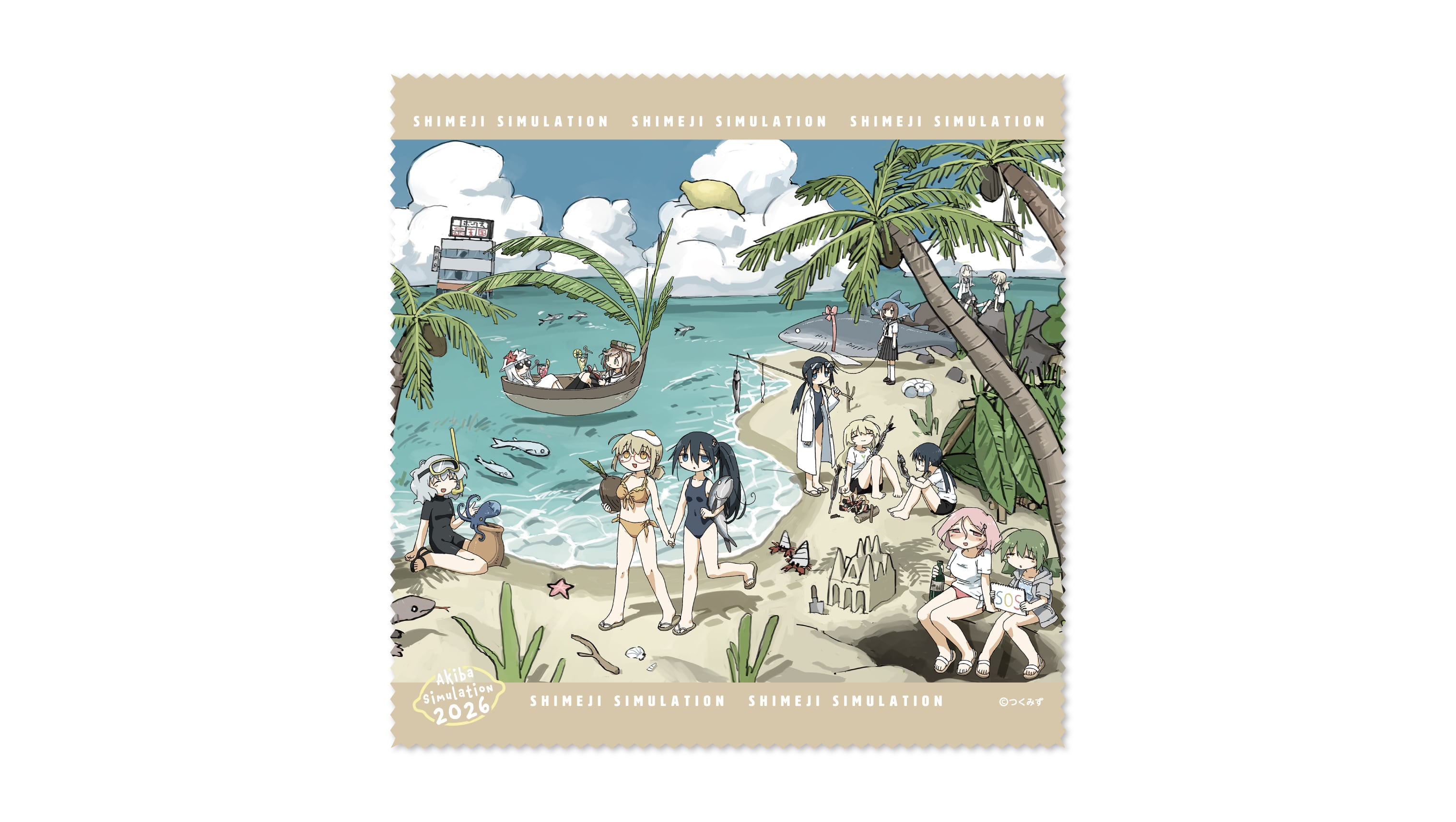 2025年12月13日〜2026年1月12日にボークス秋葉原ホビー天国2にて開催した シメジ シミュレーション 」イベント「アキバ シミュレーション 2026」の描き下ろしイラストを使用したマルチクロスです。