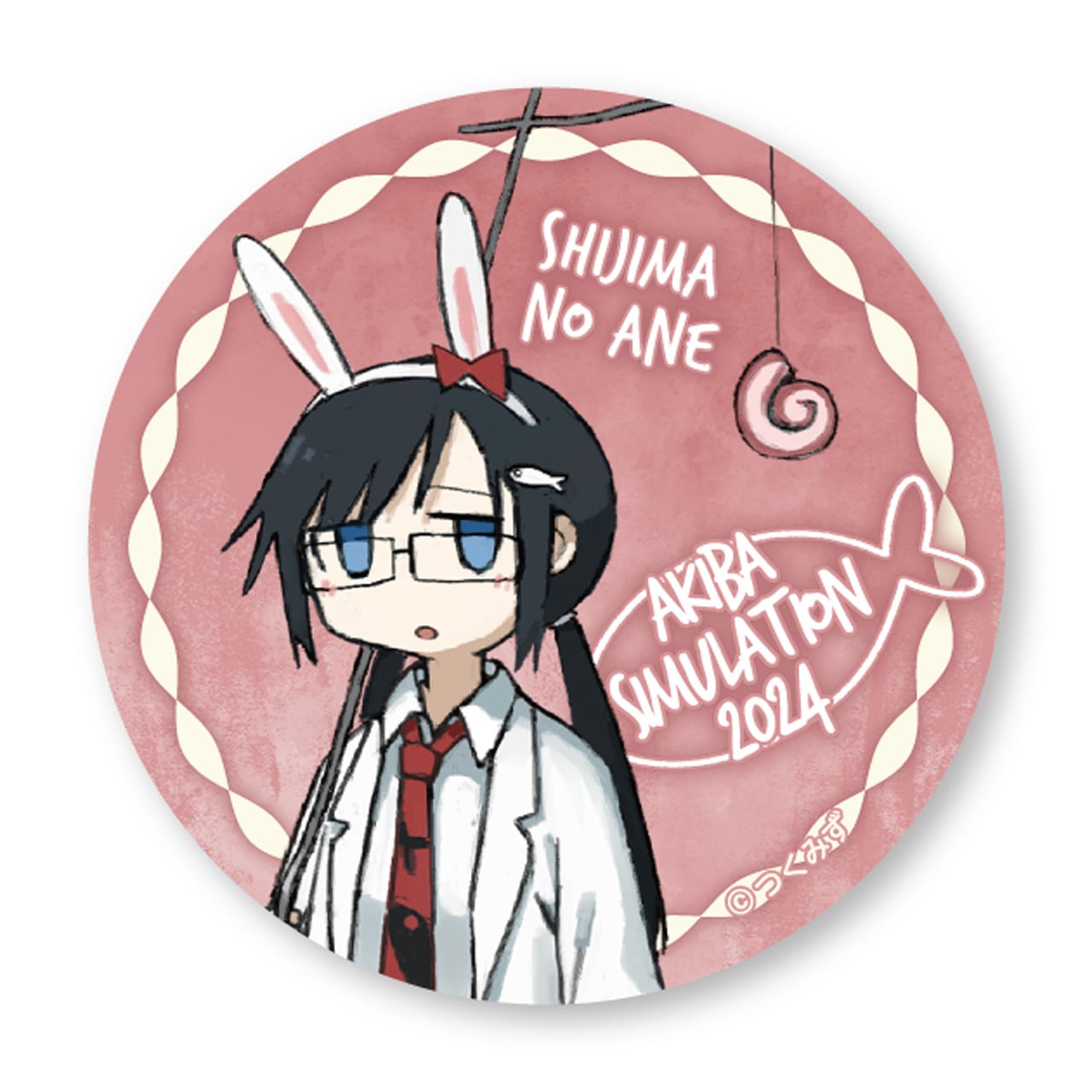 2024年1月19日~2月4日にボークス秋葉原ホビー天国2にて開催した「シメジ シミュレーション」イベント「アキバ シミュレーション」の描き下ろしイラストを使用した缶バッジです。