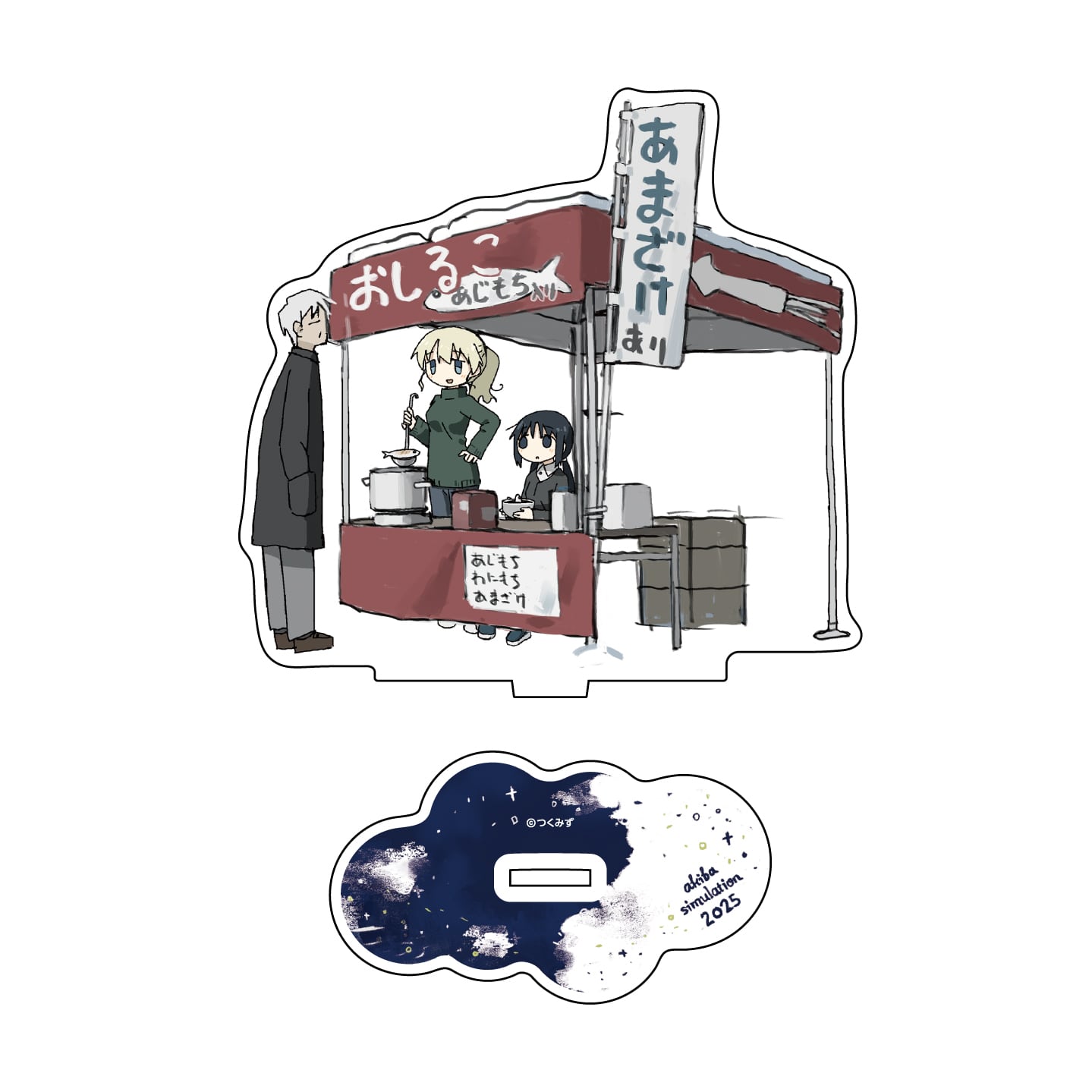 2024年12月20日〜2025年1月5日にボークス秋葉原ホビー天国2にて開催した シメジ シミュレーション 」イベント「アキバ シミュレーション 2025」の描き下ろしイラストを使用したアクリルスタンドです。