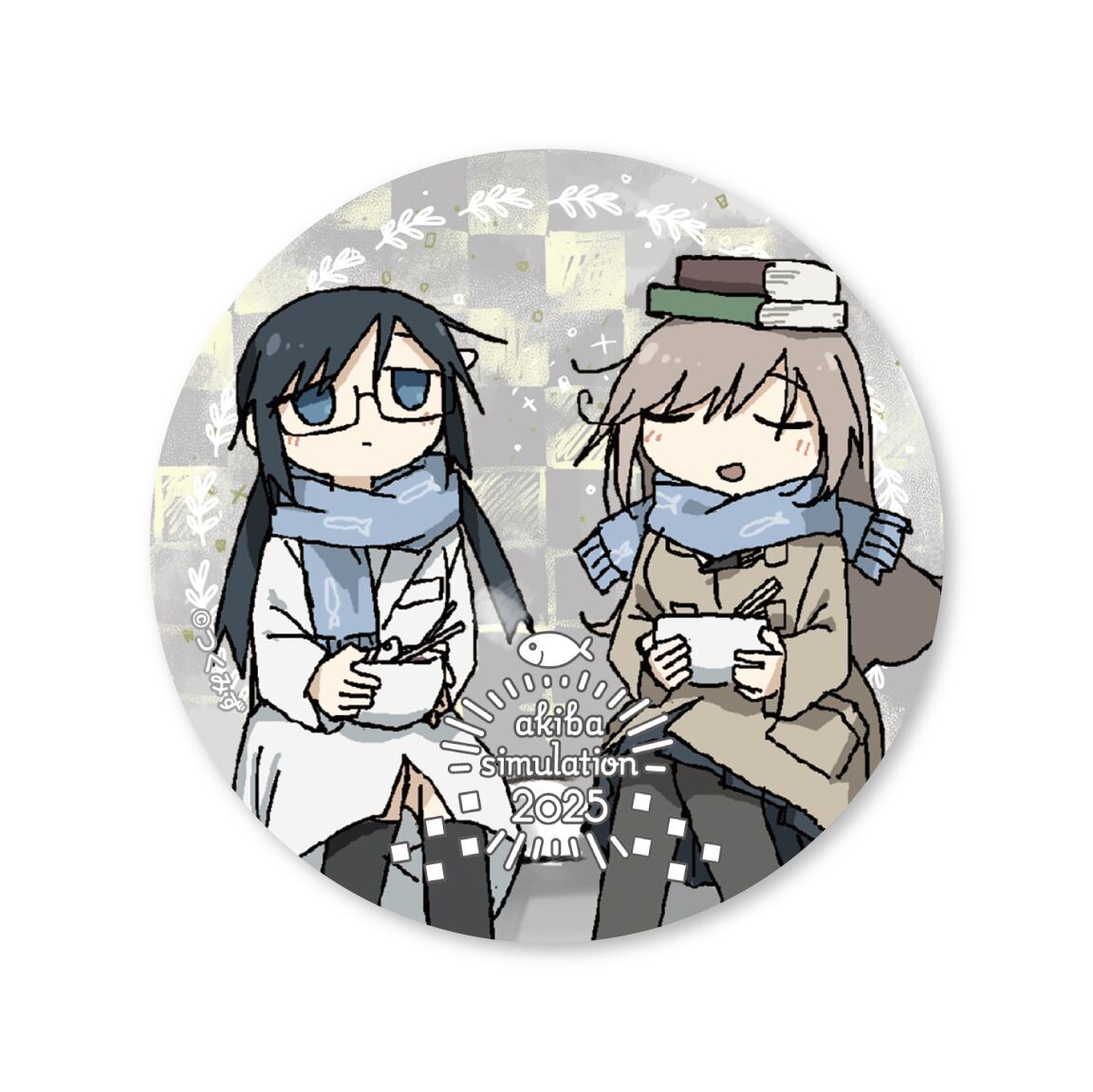 2024年12月20日〜2025年1月5日にボークス秋葉原ホビー天国2にて開催した シメジ シミュレーション 」イベント「アキバ シミュレーション 2025」の描き下ろしイラストを使用した缶バッジです。