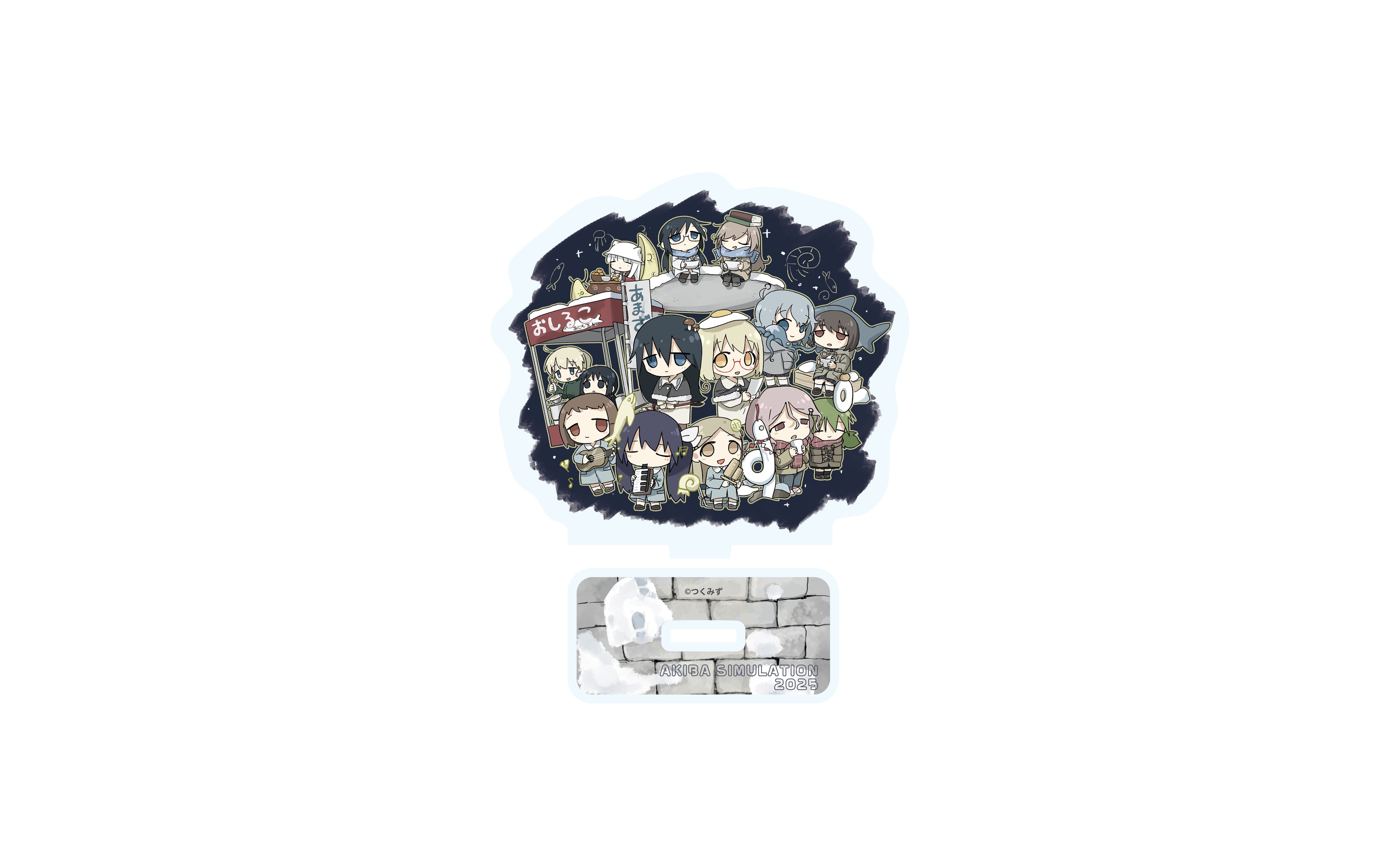 2024年12月20日〜2025年1月5日にボークス秋葉原ホビー天国2にて開催した シメジ シミュレーション 」イベント「アキバ シミュレーション 2025」の描き下ろしイラストをデフォルメ化したアクリルスタンドです。